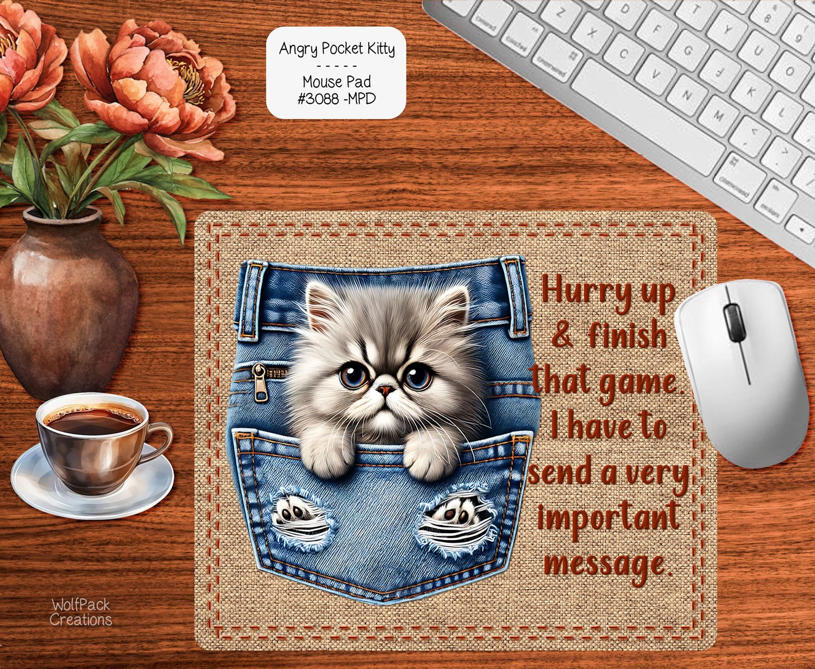 Angry Kitty Mousepad – Cute Cat Design with Jeans Pocket – Non-Slip
