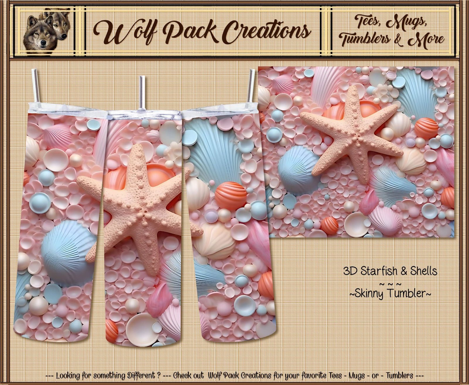 Beautiful 3D Starfish and Seashells on a Skinny Tumbler