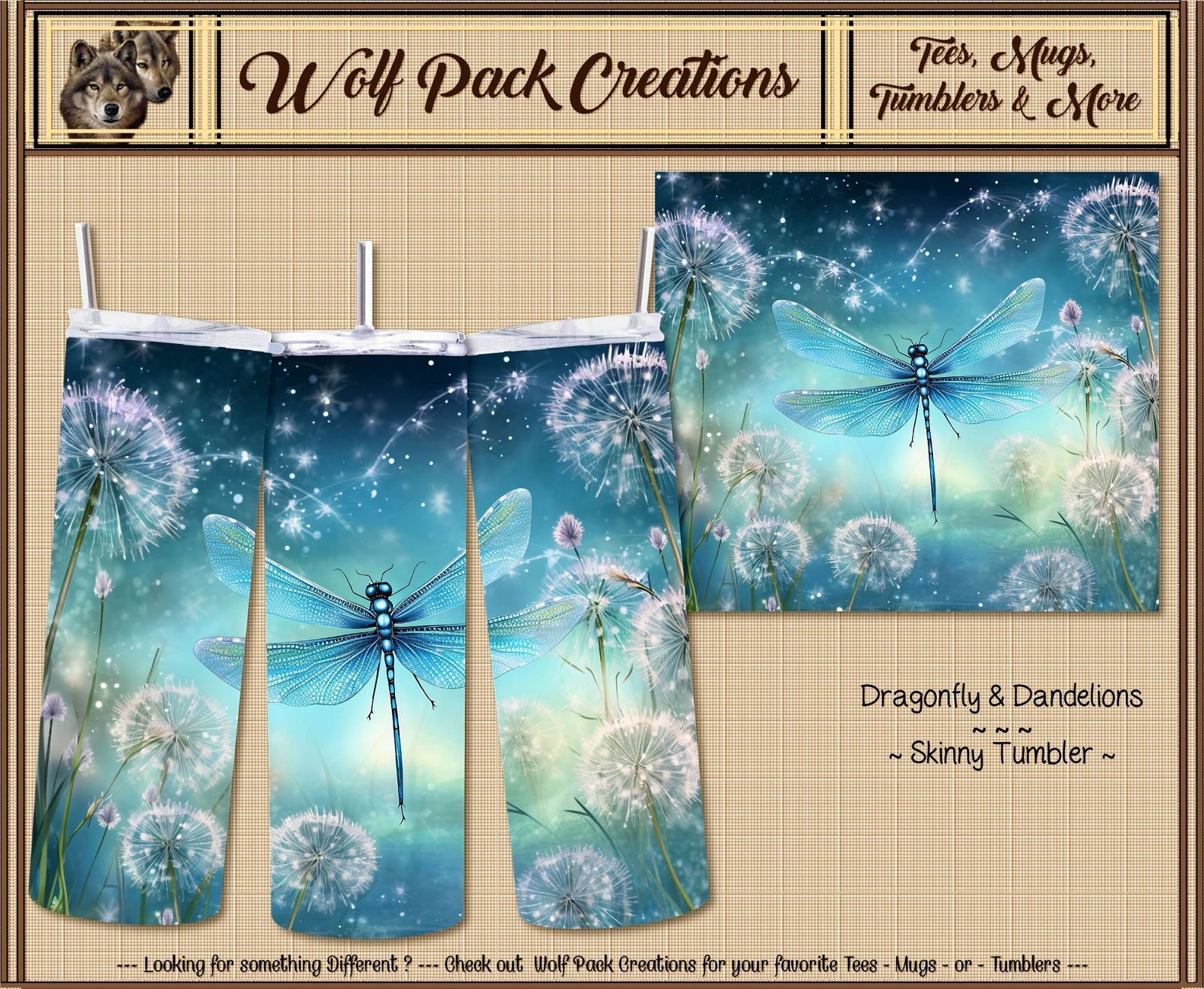 The allure of the 20-ounce insulated stainless steel skinny tumblers featuring dragonflies & dandelions lies not just in their functionality but also in their stunning design. The intricate artwork of dragonflies & dandelions imparts a sense of elegance and distinctiveness, setting these tumblers apart from more conventional designs. The delicate illustrations of dragonflies, often depicted with their wings translucent and shimmering, combined with the whimsical fluff of dandelions, create a visually captivating motif. This aesthetic appeal makes the tumbler an excellent choice for anyone looking to add a touch of personal style to their daily routine or seeking a thoughtful gift for loved ones.
