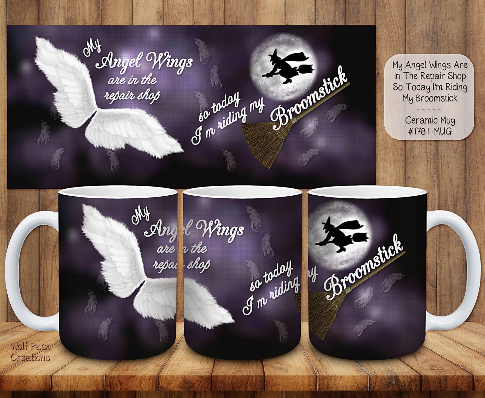 Each mug features a whimsical broomstick and witch design, adding a touch of magic to your morning routine. The vibrant, high-quality print ensures the design remains eye-catching and long-lasting.