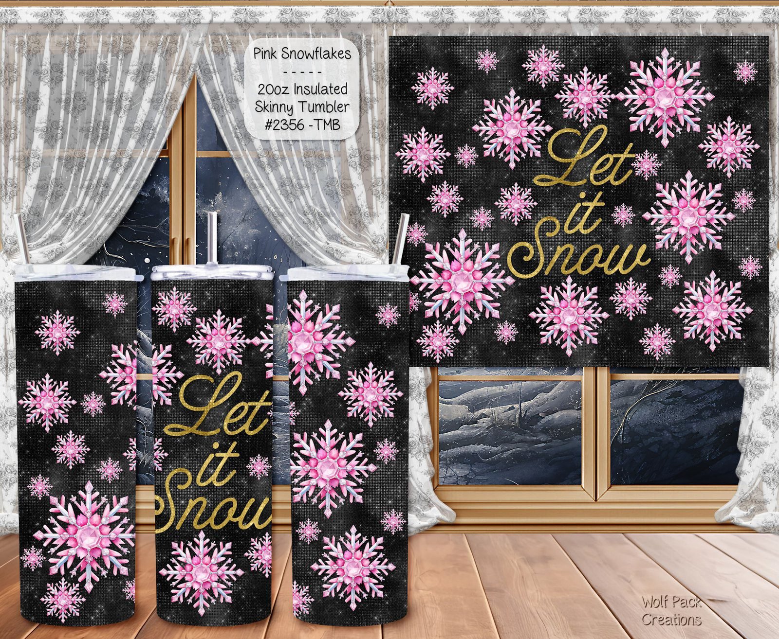 Be the first to review “Beautiful Holiday Stainless Steel Tumbler: Let it Snow Pink Snowflakes”