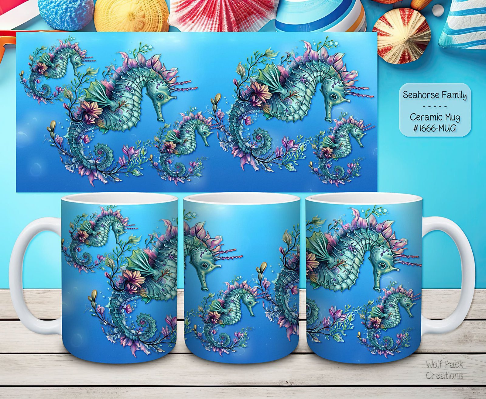 Beautiful Seahorse Family Design on a Ceramic Mug