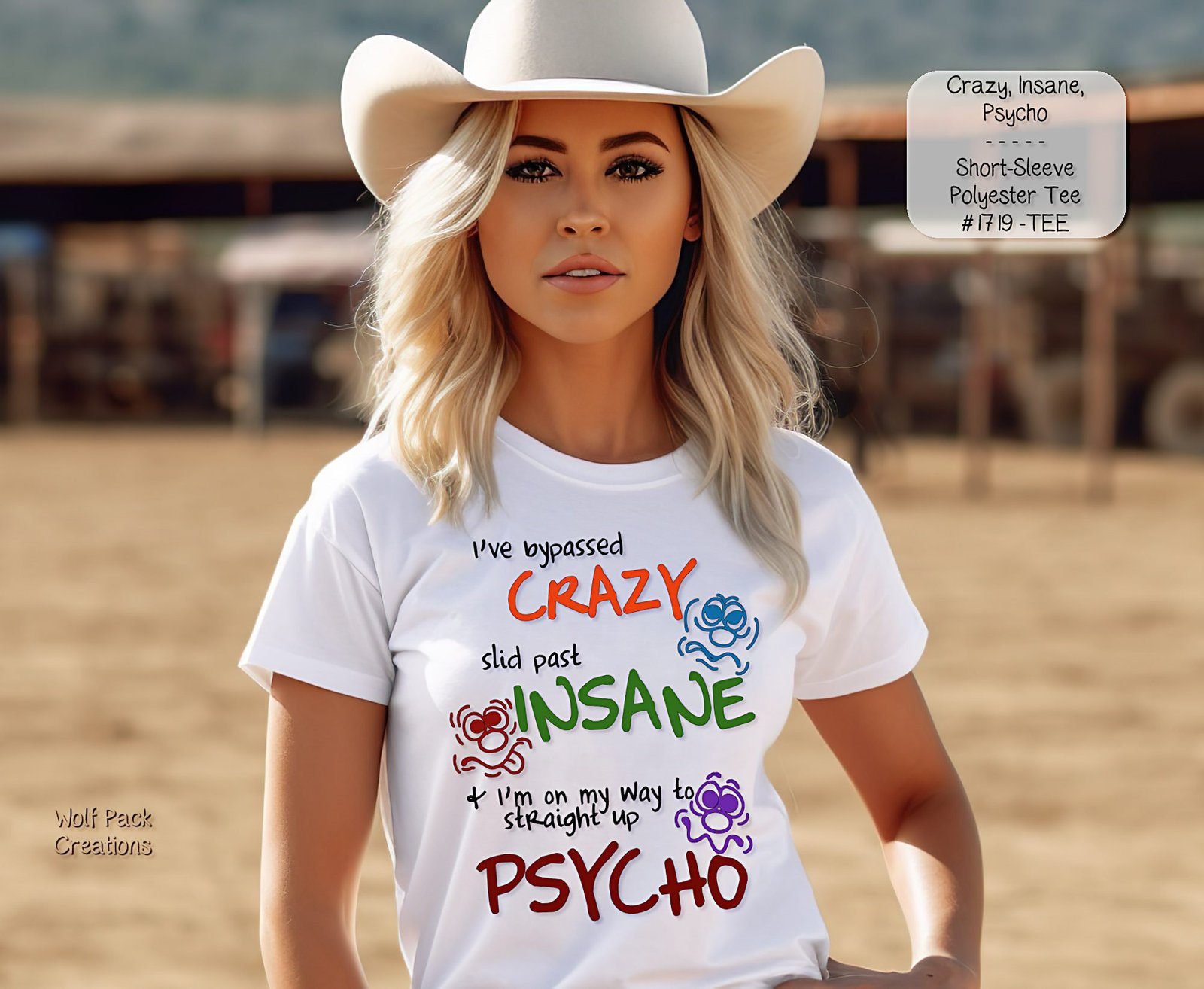 So, if you’re looking to add a touch of craziness, insanity, and psycho coolness to your wardrobe, look no further. Our unisex short sleeve shirt is the perfect choice. Made from premium polyester and featuring standout designs, it’s a must-have for anyone looking to make a fashion statement. Get yours today and let your shirt do the talking!
