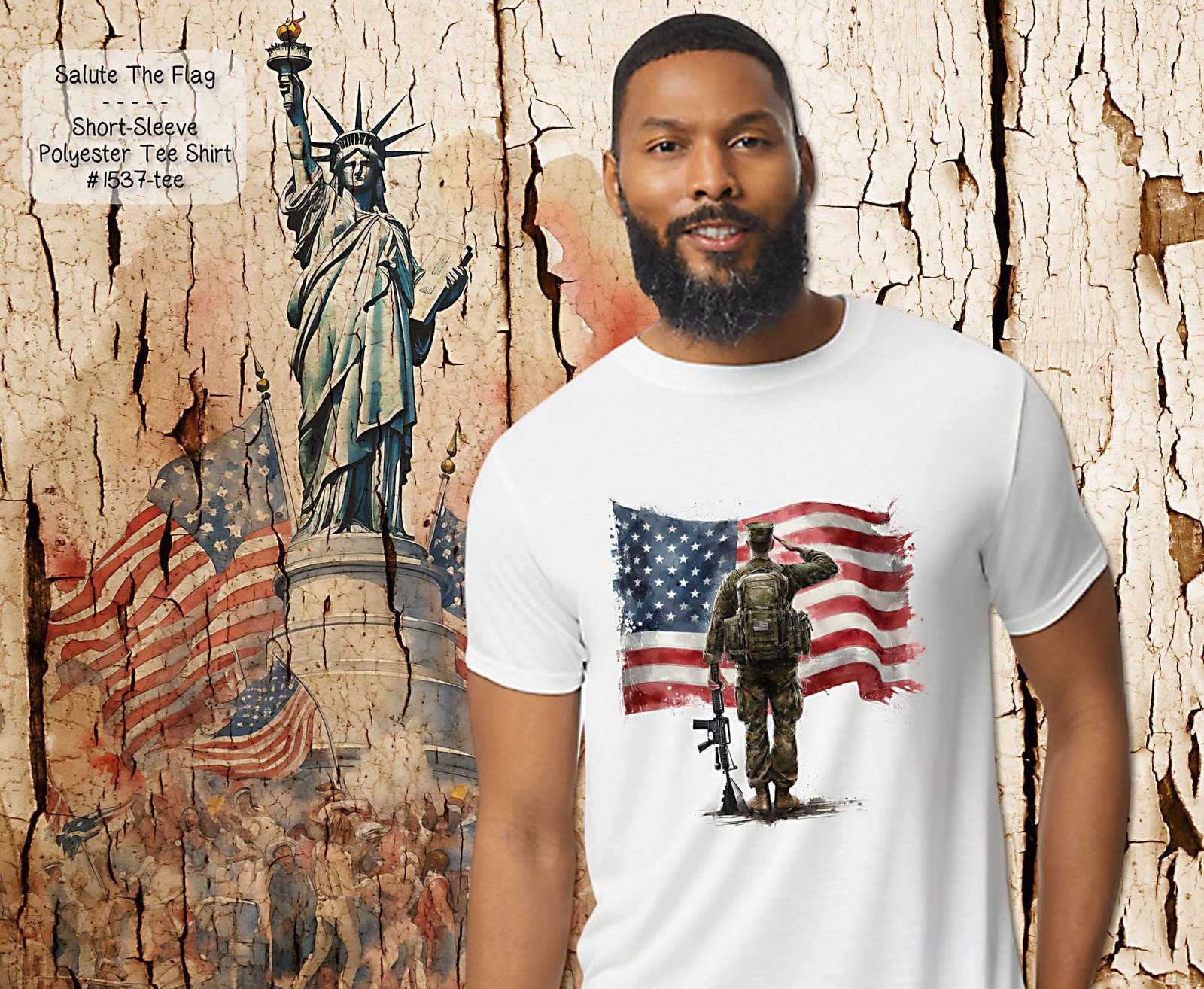 Looking for a stylish way to salute the flag? Our unisex short sleeve shirt is the perfect blend of comfort and patriotism. Made from high-quality polyester, this shirt ensures both durability and a comfortable fit, making it ideal for any occasion.