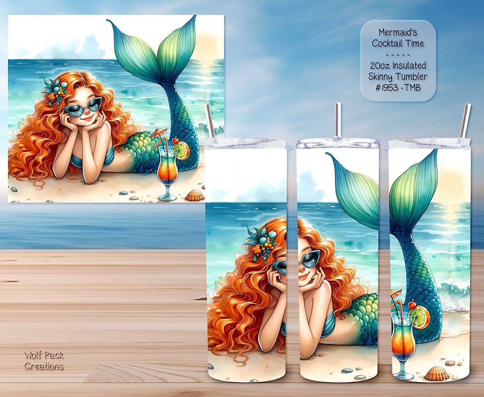 Be the first to review “Beautiful Skinny Tumbler featuring a Mermaid enjoying a Cocktail”