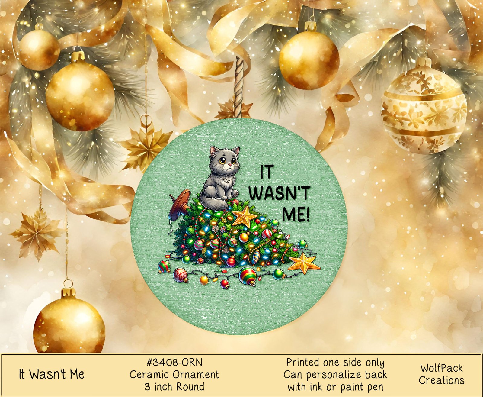 Add a touch of feline charm to your Christmas decor with our Cat and Christmas Tree Ornament. Crafted from high-quality ceramic, this round ornament features an adorable kitten playing around a festive tree. Perfect for cat lovers, it’s a unique addition to your holiday collection. Get yours today!