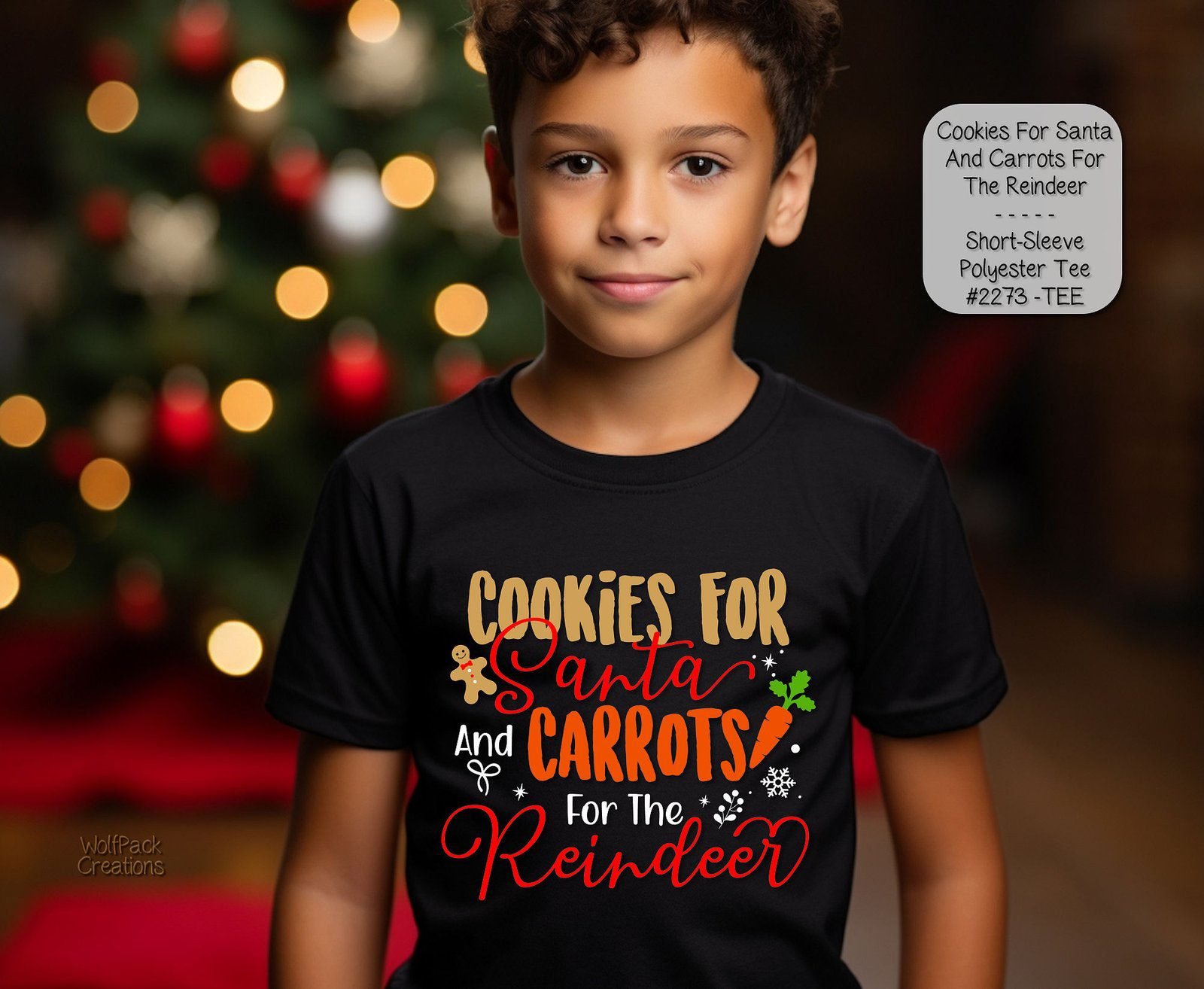 The shirt features an eye-catching pattern of playful cookies, vibrant carrots, and joyous reindeer, adding a dash of cheer to any outfit. Whether you’re celebrating the holidays or just enjoying casual wear, this shirt is sure to make a statement.