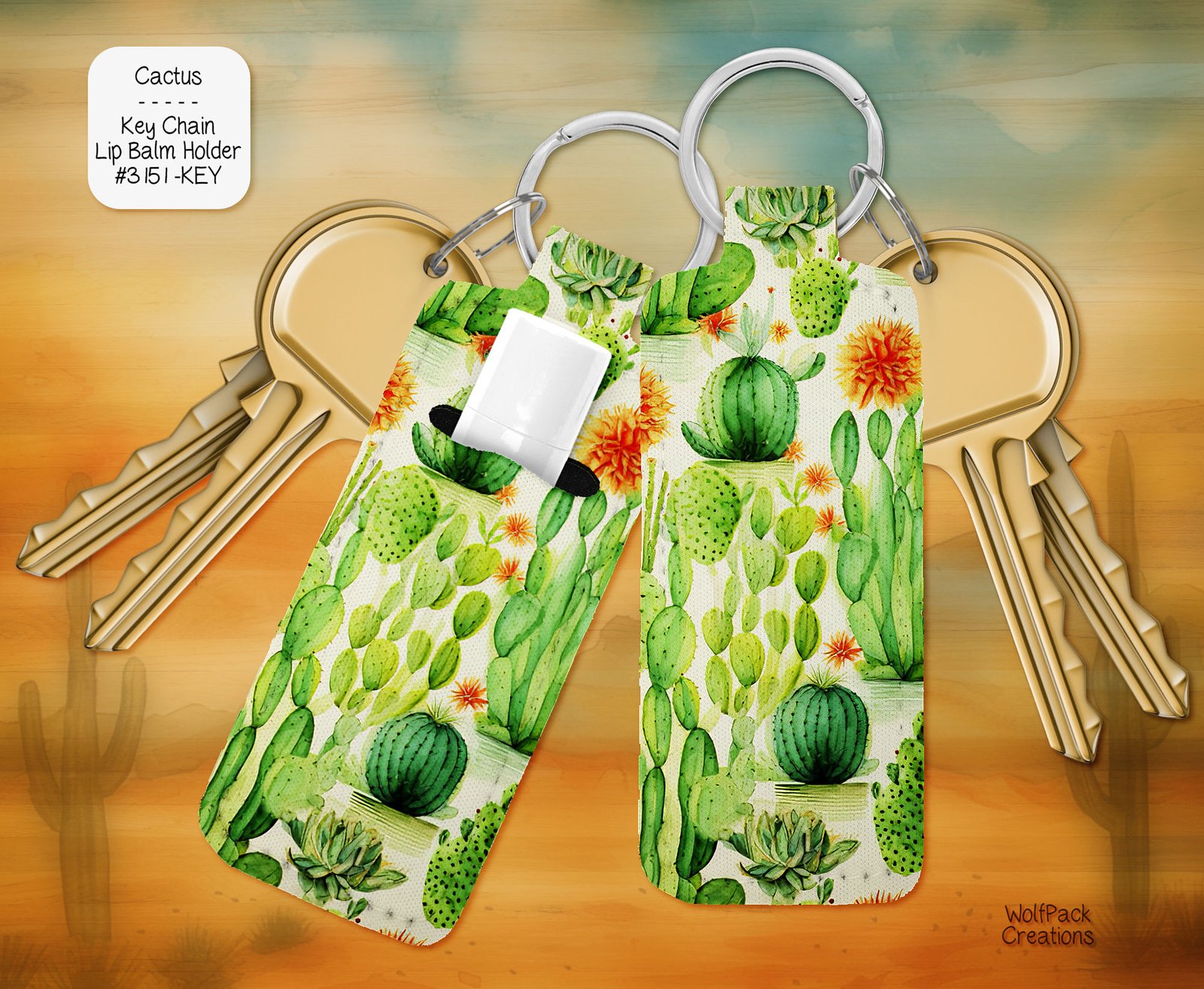 Stay fresh and stylish with a touch of the desert wherever you go. Our Cactus Lip Balm Keychain makes reapplying lip balm easy and fun, ensuring your lips stay soft and protected throughout the day. Embrace the beauty of nature with this unique and practical accessory.