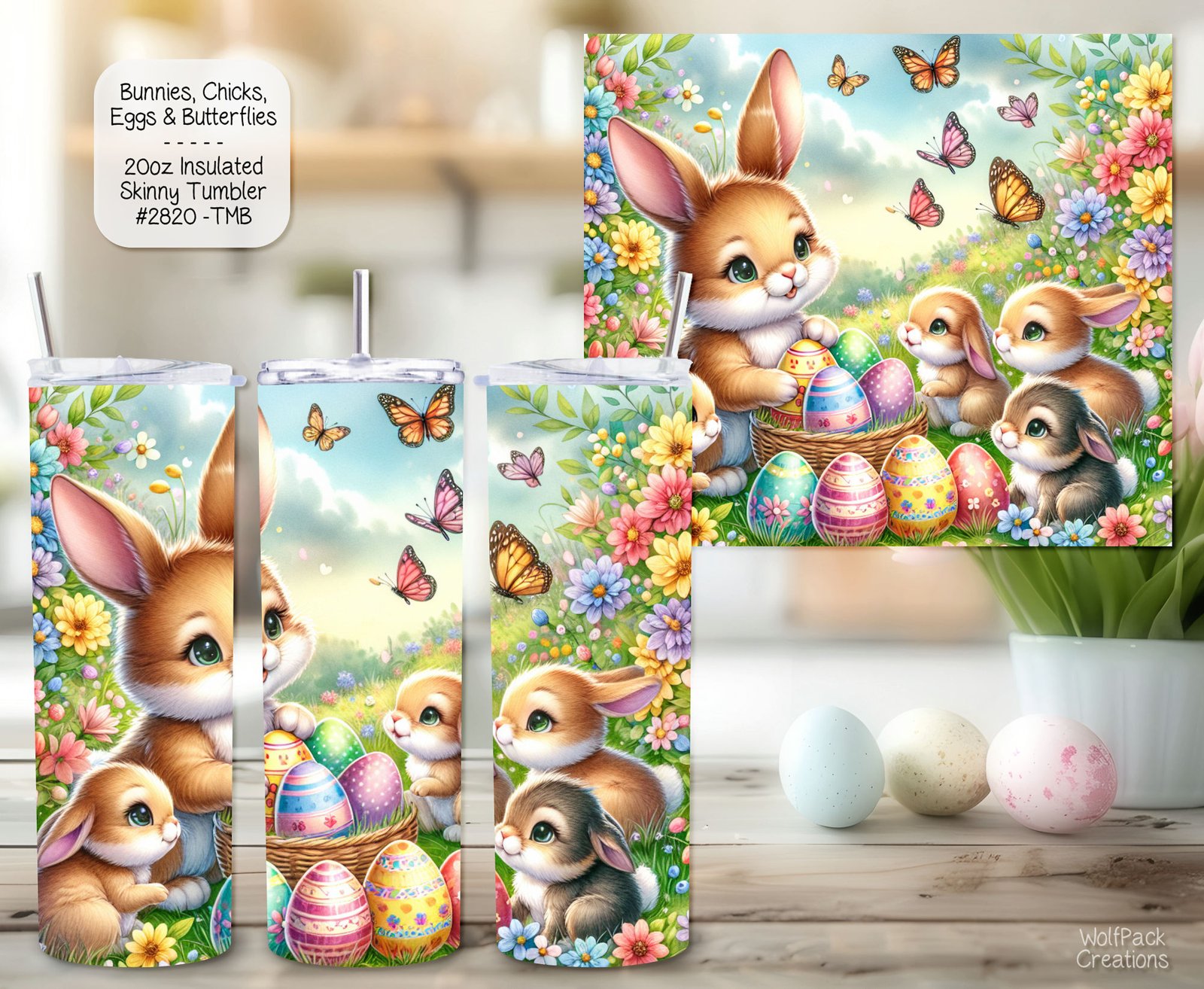 Introducing our Easter-themed Insulated Tumbler, the perfect companion for your drinks this season! Crafted from high-quality stainless steel, this tumbler keeps your beverages at the ideal temperature while showcasing delightful designs of bunnies, butterflies, and eggs. Embrace the spirit of Easter with every sip!
