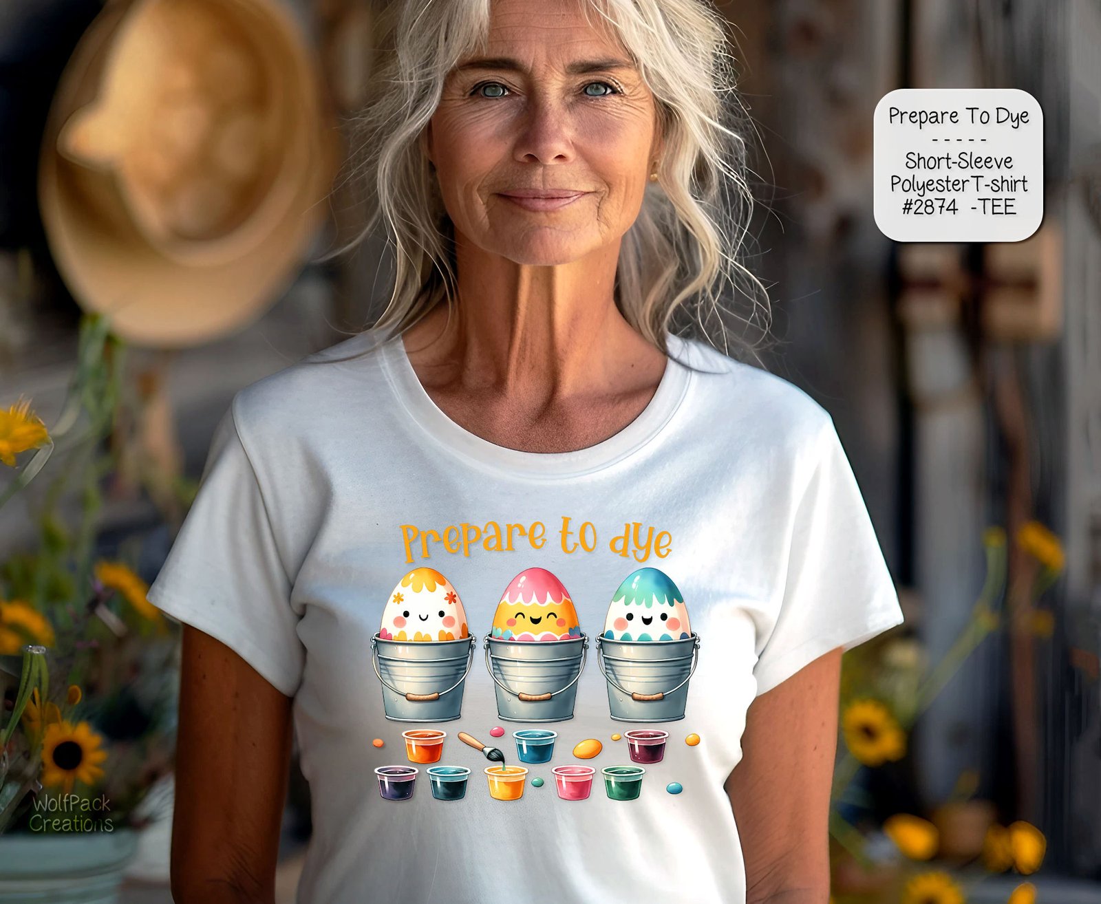 Get into the Easter spirit with our “Prepare to Dye” eggs t-shirt! Perfect for egg painting enthusiasts, this short sleeve tee is made from high-quality polyester for comfort and durability. Embrace the festive vibes and stand out with this unique and fun t-shirt, ideal for Easter celebrations.