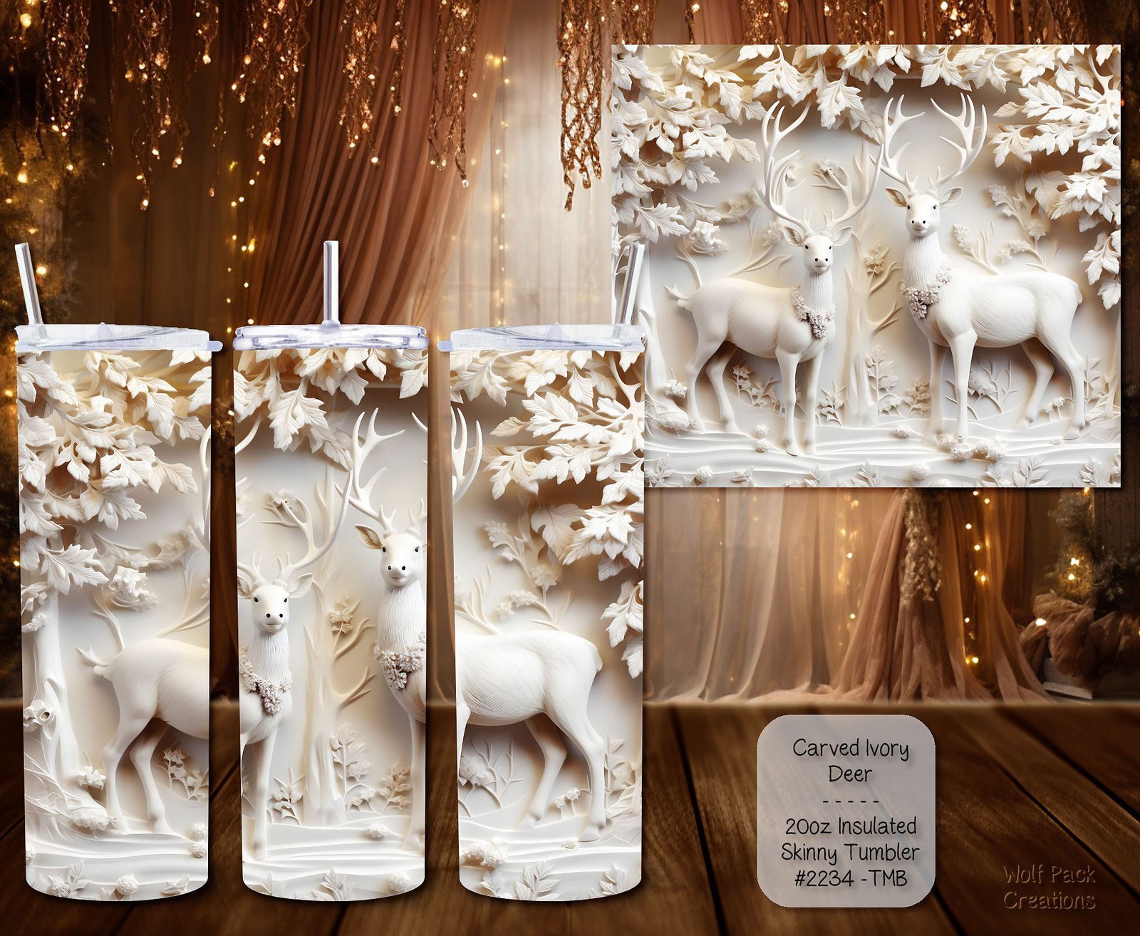 Introducing the stunning ivory deer design on our stainless steel skinny tumbler, perfect for those who appreciate both style and function. This 20-ounce insulated tumbler is designed to keep your drinks at the ideal temperature for hours.