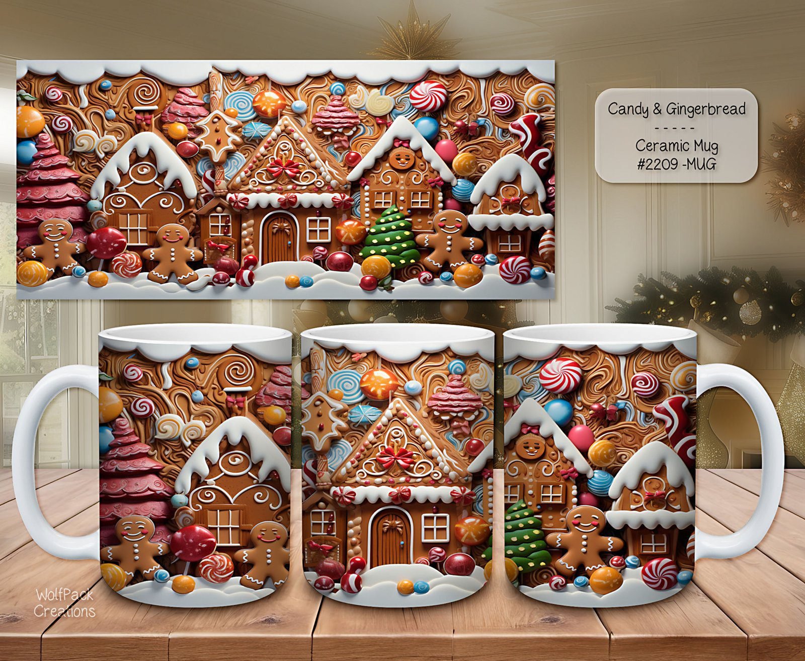 Our ceramic coffee mugs are beautifully crafted to bring the festive spirit into your home. Available in both 11-ounce and 15-ounce sizes, these mugs feature delightful gingerbread and candy designs. They make an ideal gift for coffee lovers or a charming addition to your kitchen.