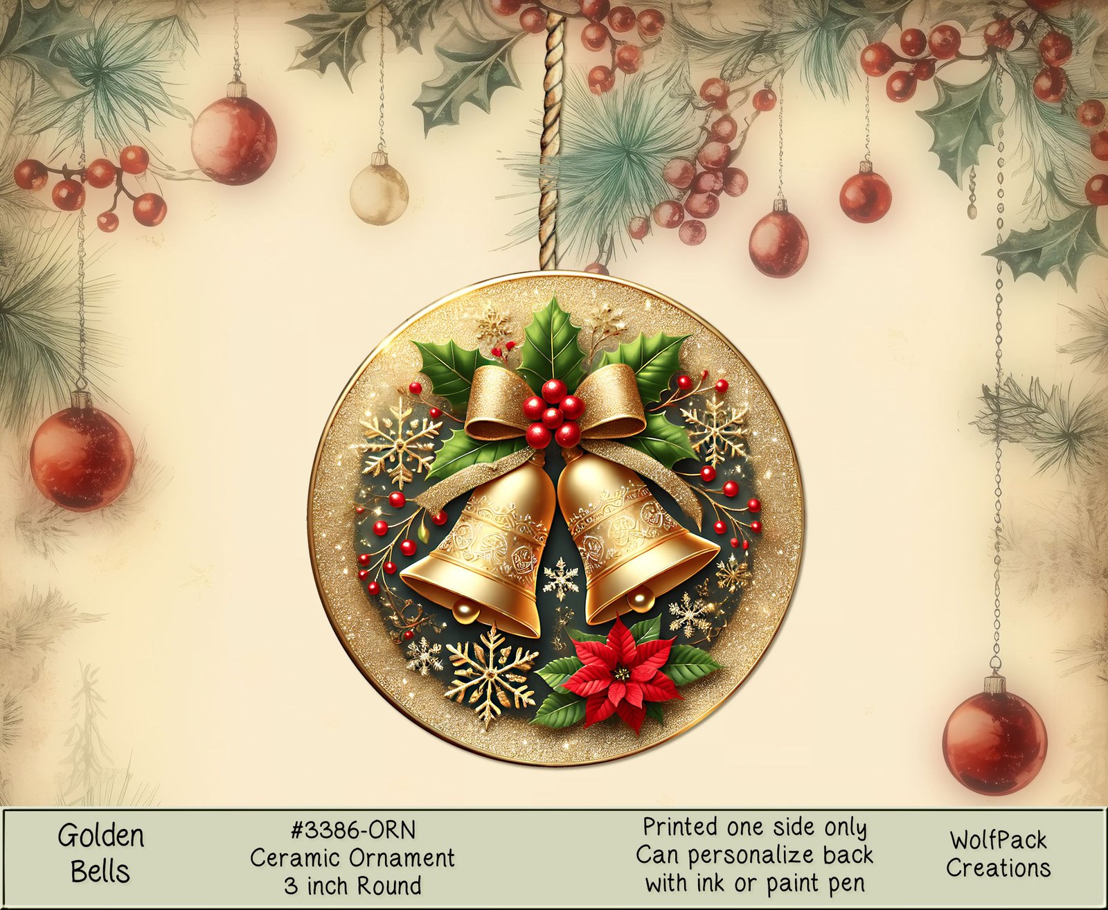 Elevate your holiday decor with our Golden Bells Christmas Ornament. Crafted from exquisite ceramic in a dazzling gold finish, these round ornaments exude elegance and festive charm. Add a touch of merry and cheer to your Christmas tree or garlands with these timeless ornaments that capture the essence of the holiday season. Make your festivities shine with our exquisite Golden Bells Christmas Ornaments.