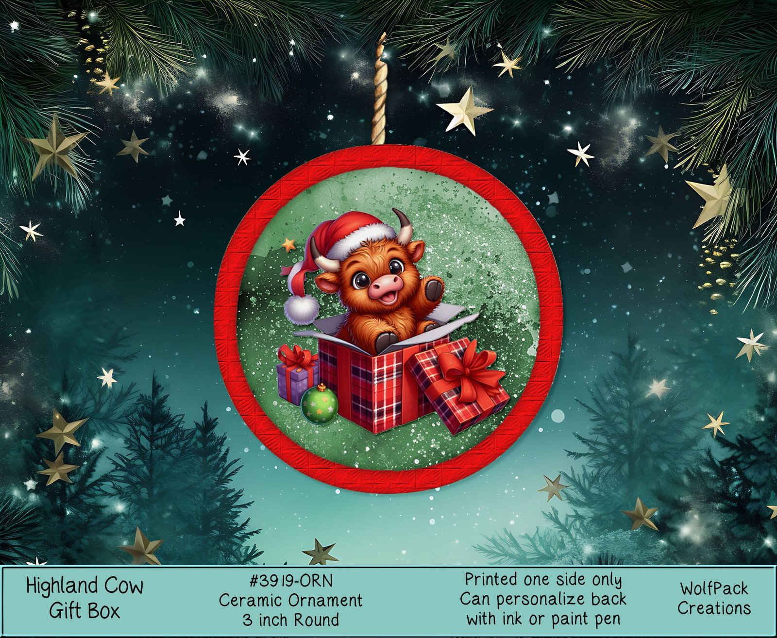 Add a touch of whimsy to your holiday decor with our Christmas Highland Cow Ornament. Crafted from high-quality ceramic, this round ornament brings a cheerful vibe to your Christmas tree. Spread the merry cheer this season with this adorable ornament, perfect for gifting or adding a festive flair to your own collection.