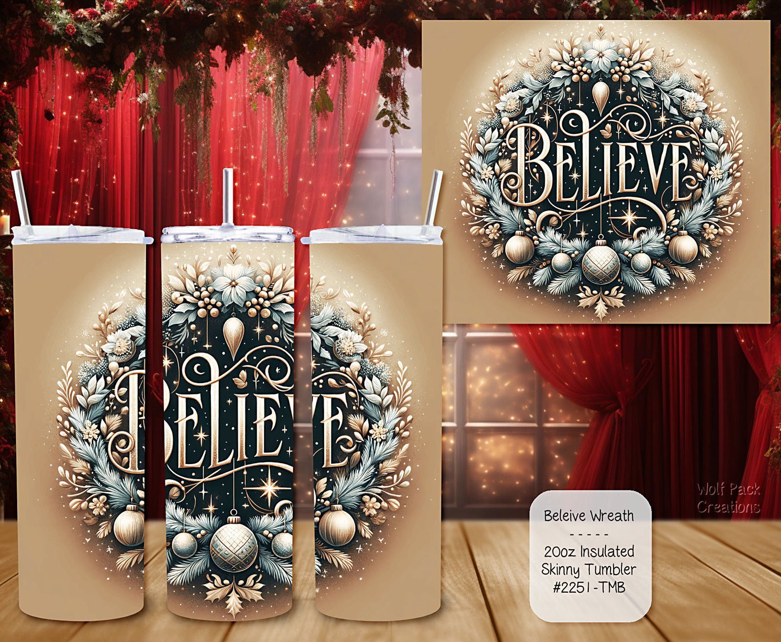 Our insulated tumbler is a celebration of your passions. Adorned with motivational messages, this tumbler serves as a daily reminder to believe in Christmas. Stay inspired and hydrate effortlessly with the Believe stainless steel skinny tumbler!