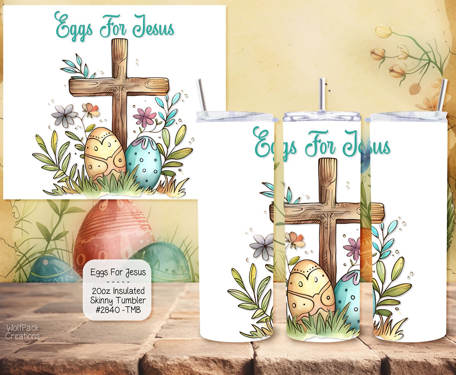 Celebrate Easter in style with our Easter-themed Tumbler featuring a beautiful cross, symbolic eggs, and a serene image of Jesus. Crafted from high-quality stainless steel, this insulated drink cup keeps your beverages at the perfect temperature. Embrace the holiday spirit and enjoy your favorite drinks with this unique and meaningful tumbler.