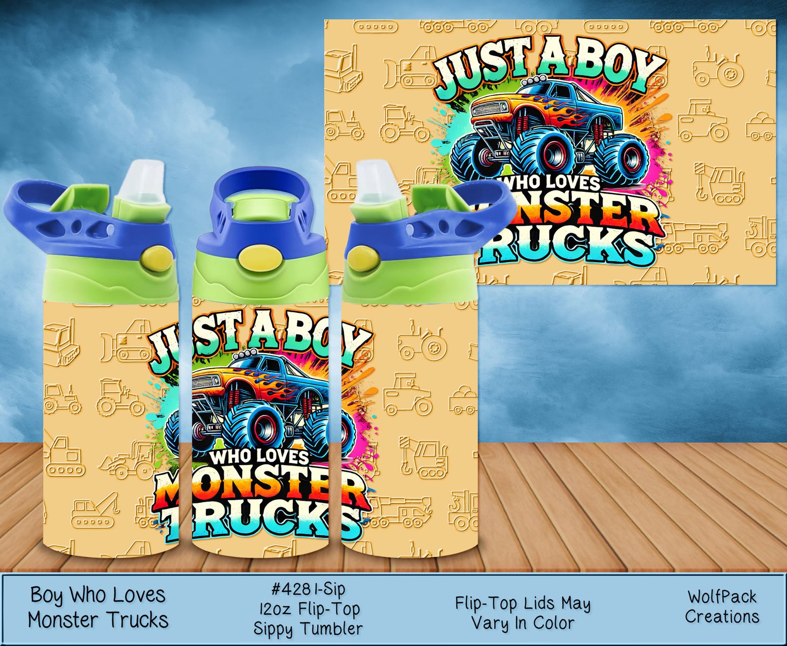 Keep your child hydrated on-the-go with this spill-proof sippy cup that combines functionality with playful aesthetics. The Kids Monster Trucks Sippy Tumbler is not only practical but also a hit with kids who adore monster trucks. Say goodbye to messy spills and hello to happy sipping adventures!