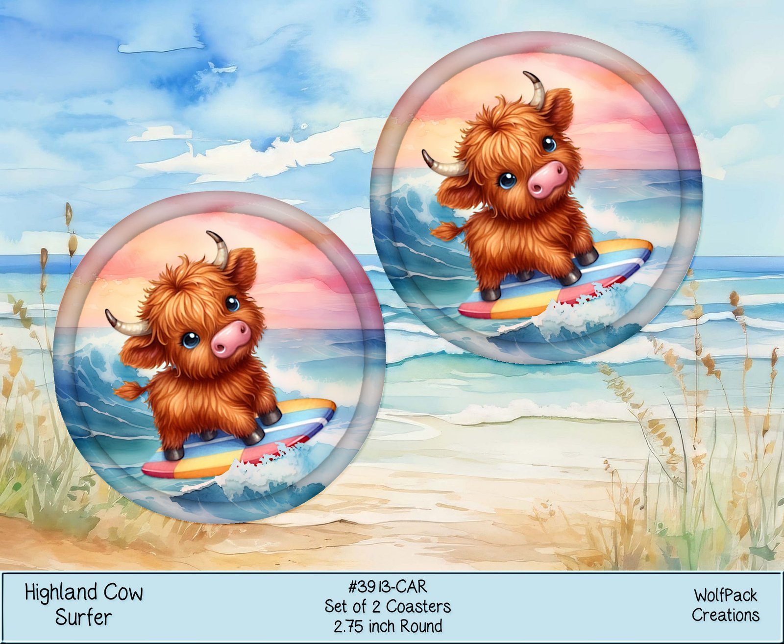 Add a touch of fun to your car with our Highland Cow Surfing Car Coaster! Made from high-quality neoprene, these coasters will keep your cup holders dry and your spirits high as you hit the road. Embrace the beach vibes with a quirky design that stands out on every drive. Say goodbye to spills and hello to style with these practical coasters.