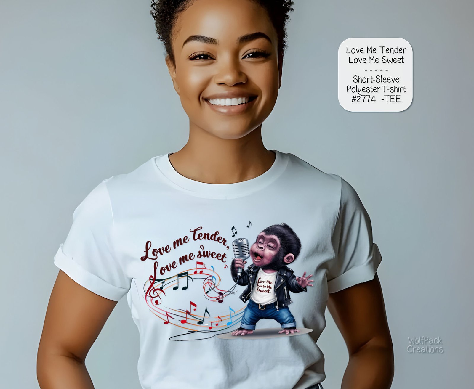 Be the first to review “Polyester Valentine’s Day T-Shirt: Love Me Tender Chimp Design”
