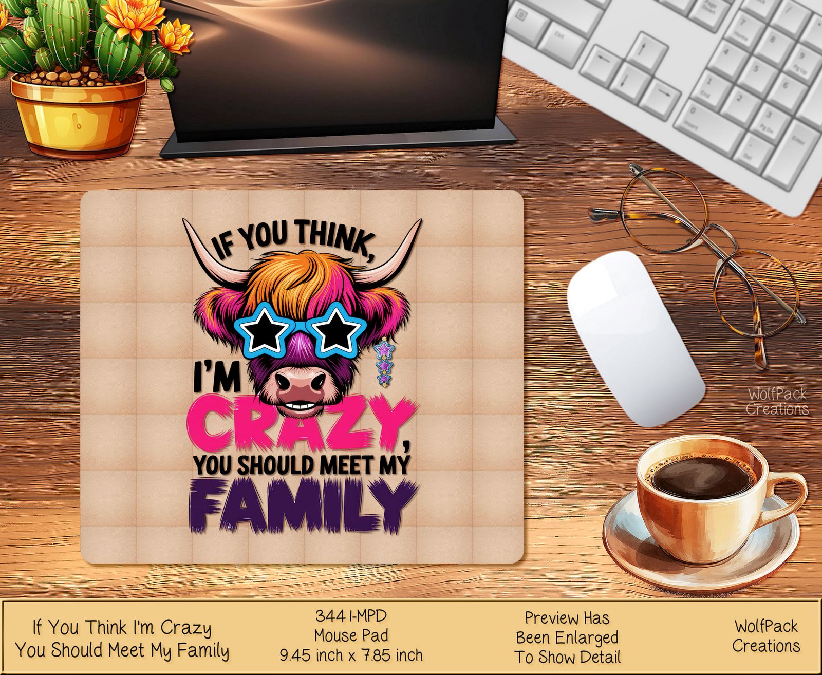 Add a touch of whimsy to your workspace with our “If You Think I’m Crazy” highland cow mousepad. Featuring a charming highland cow wearing sunglasses, this mousepad is both fun and functional. Enjoy smooth navigation and precise control while adding a playful vibe to your desk. Ideal for animal lovers and those who appreciate unique accessories. Elevate your desk setup today!