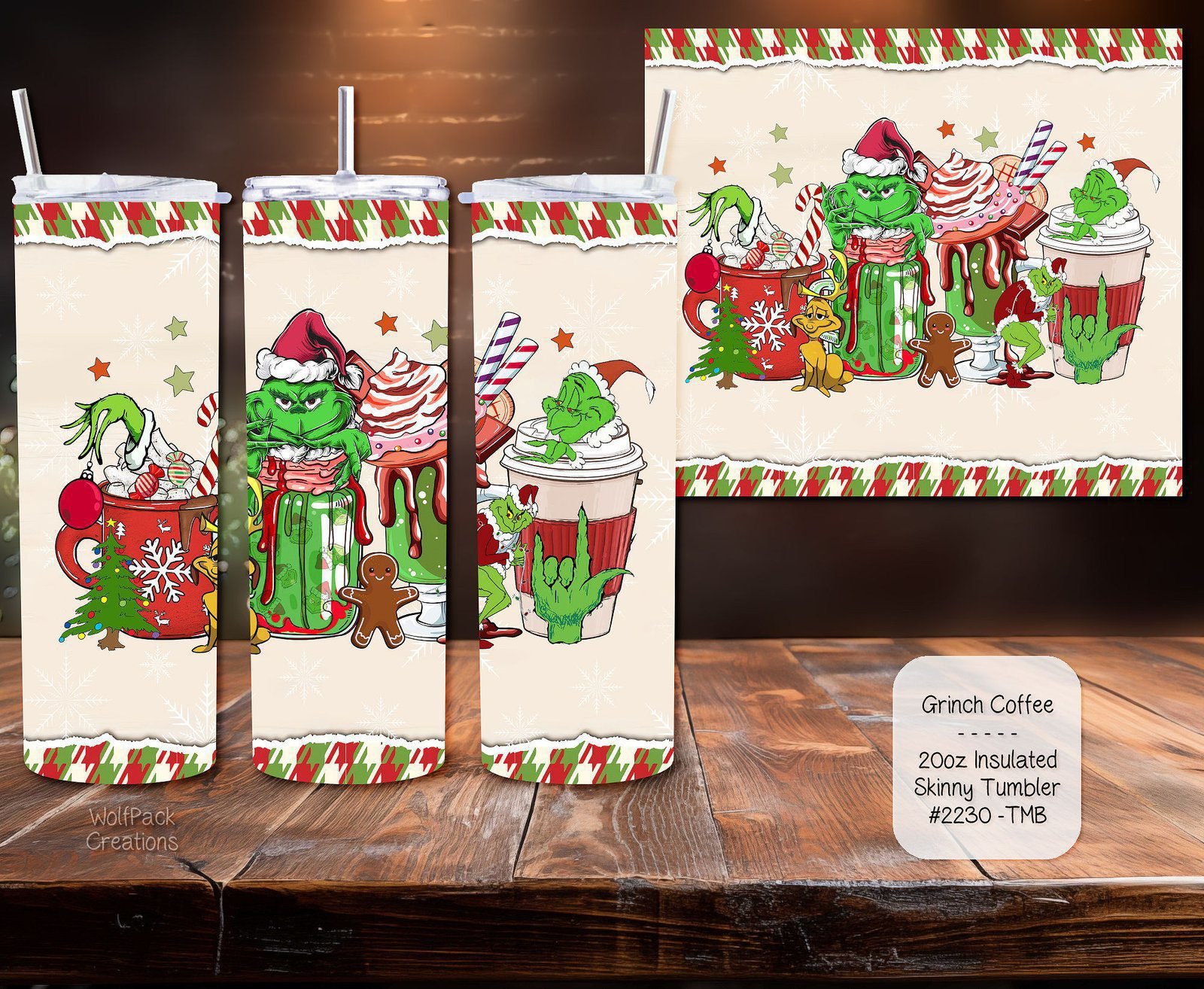 Introducing our 20-ounce stainless steel skinny tumbler, designed for both aesthetics and efficiency. This tumbler features a playful Grinch design, making it a perfect gift for the holiday season or for any fan of the classic tale. Its insulated construction ensures that your coffee remains hot, while drinks like iced tea or smoothies stay refreshingly cold.