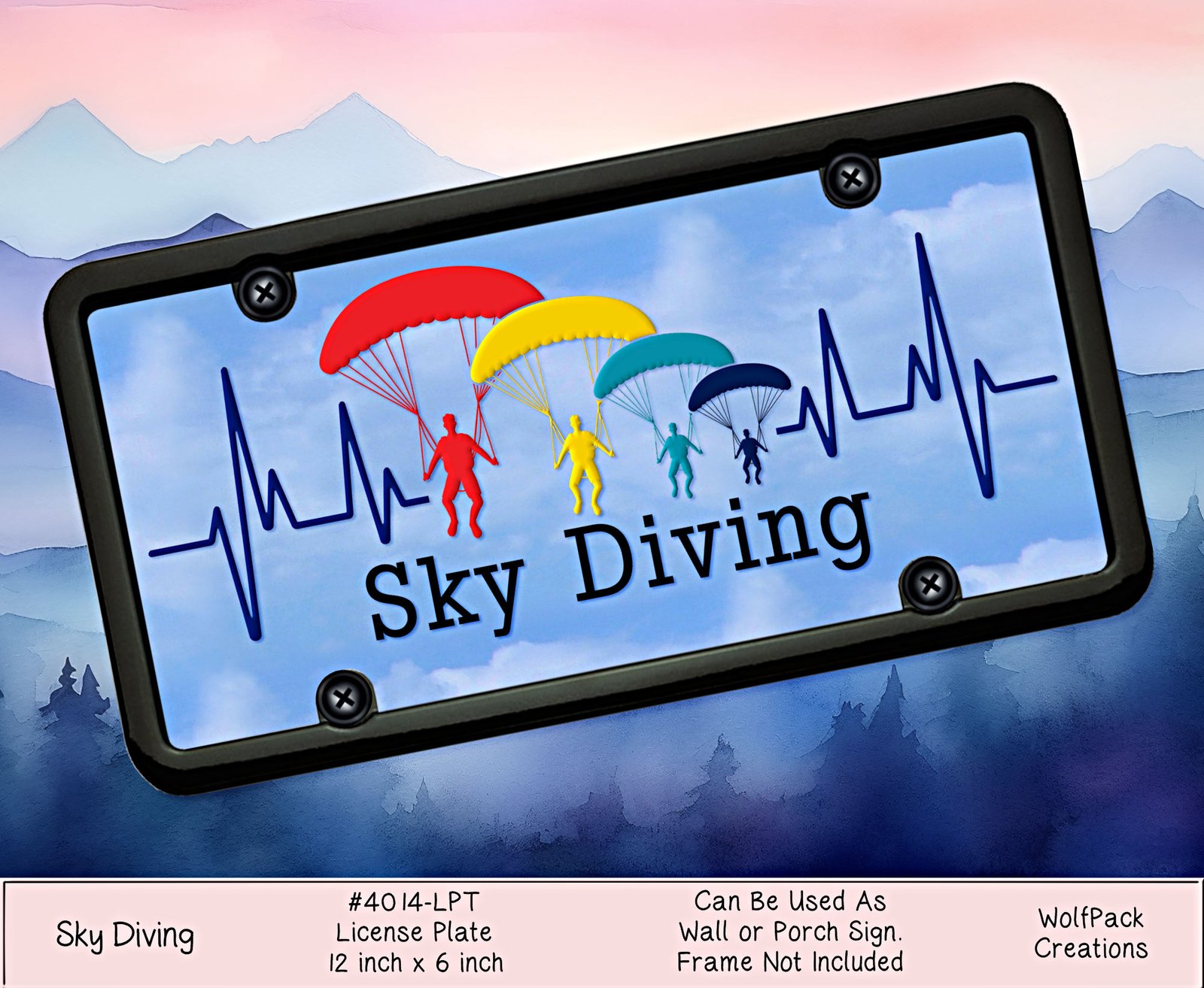 Display your love for skydiving with our Sky Diving License Plate, a must-have for thrill-seekers. This vanity plate showcases your passion for adventure and the rush of free-falling through the skies. Featuring a unique canopy design, it’s the perfect accessory to add excitement to your vehicle.