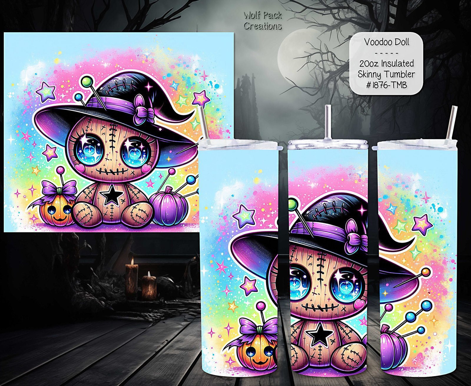 Stand out from the crowd with the unique voodoo doll design on our 20-ounce insulated tumbler. The eye-catching graphics make it a fun and distinctive accessory, perfect for expressing your personality.