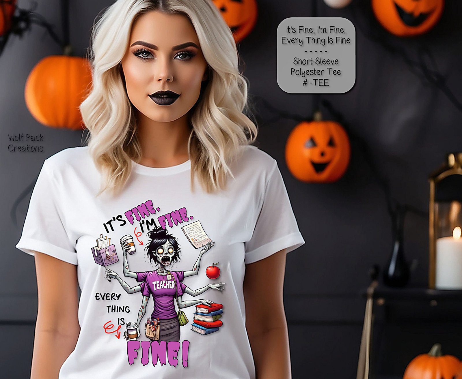Made from high-quality polyester, this shirt promises durability and comfort throughout the day. Easy to wash and maintain, it’s a practical addition to any teacher’s wardrobe for Halloween festivities.