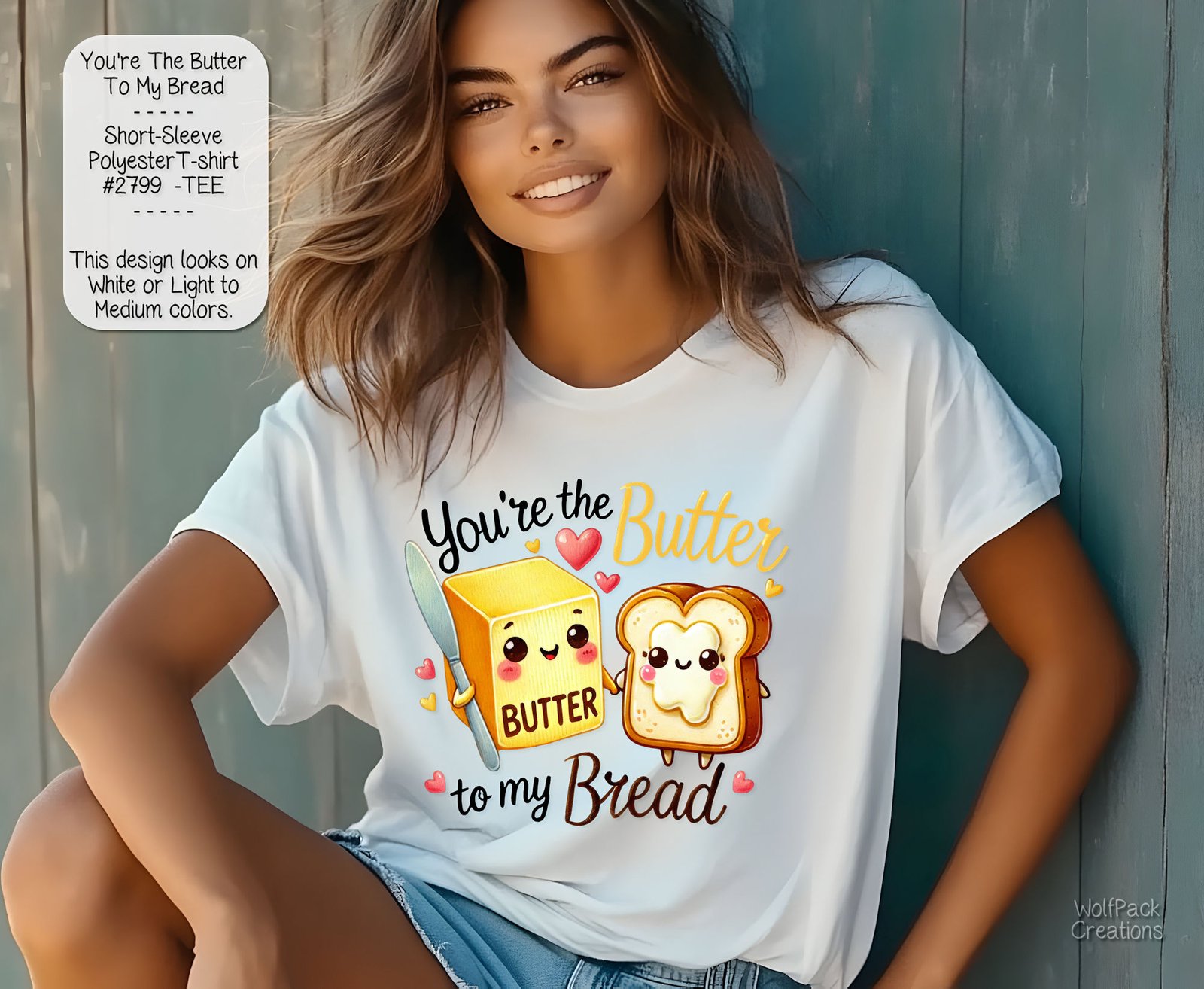 Celebrate love in style with our Valentine’s Day-themed short sleeve t-shirt! Made from premium polyester, this shirt is as comfortable as it is charming. Embrace the season of love with a design that’s the perfect blend of butter and bread – essential for your Valentine’s Day wardrobe. Spread love effortlessly with this unique piece!